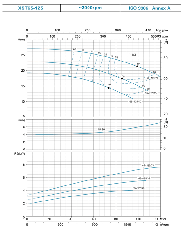Описание нормальновсасывающего насоса LEO XST 65-125/55