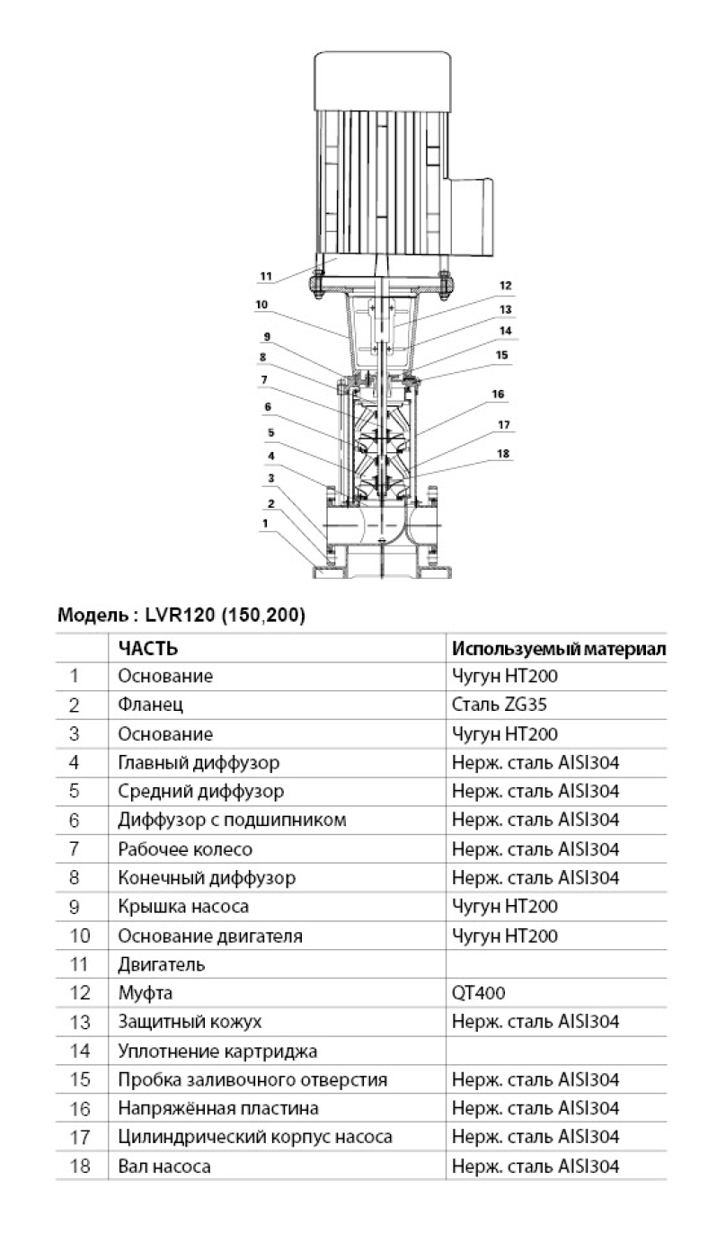 Насос LEO LVR 120-2 предназначен для перекачки невязких, негорючих, невзрывоопасных, не содержащих твердых включений и волокон жидкостей
